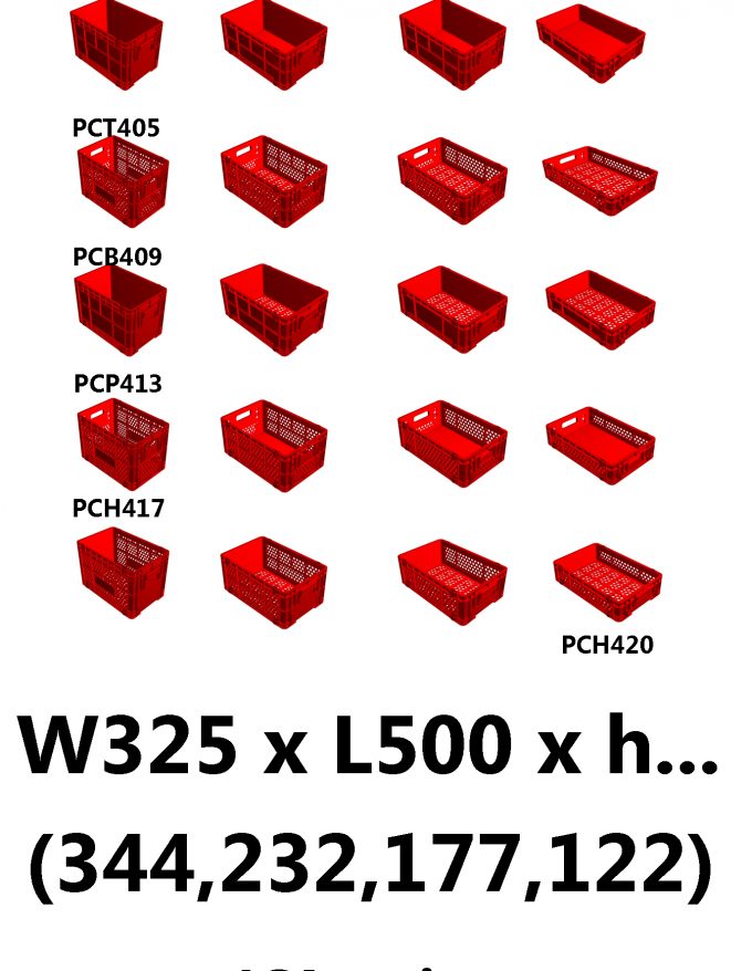 กลุ่มลังชุด 4CA ซีรี่ส์ขนาดกว้าง 325 มม. ยาว 500 มม. ความสูง (มีให้เลือก 4 ขนาด 344 , 232 , 177 และ 122 มม.)