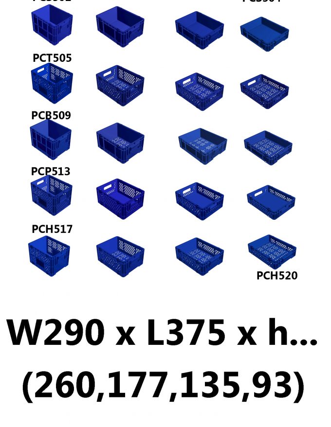 ลังชุด 5MI ซีรี่ส์กว้าง 290 มม. ยาว 375 มม. สูง (มีให้เลือก 4 ขนาด 260 , 177 , 135 และ 93 มม.)